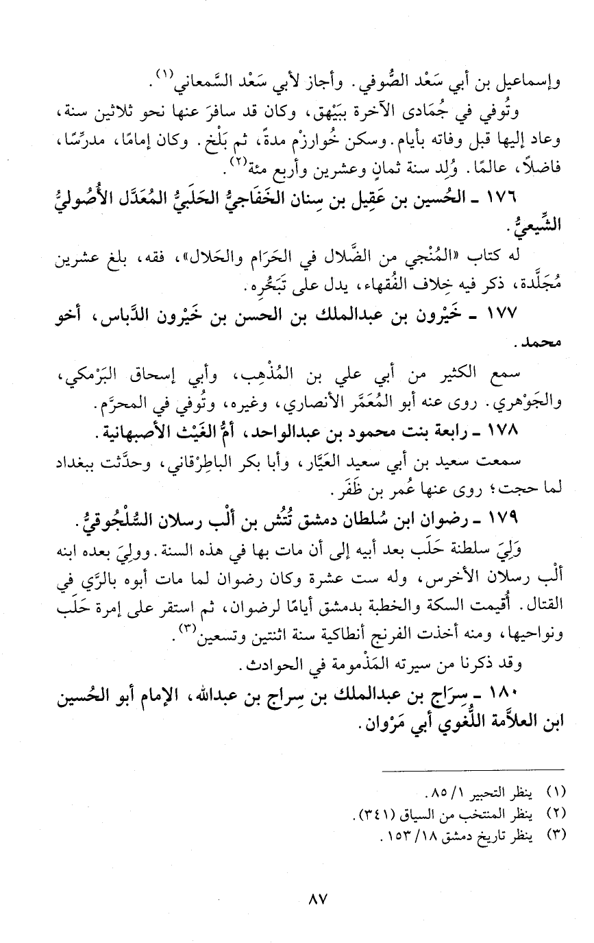 176 - الحُسَيْن بْن عقيل بْن سِنان، الْخَفَاجيّ، الحلبيّ، المعدّل، الأصُوليّ، الشّيعيّ. [المتوفى: 507 هـ]