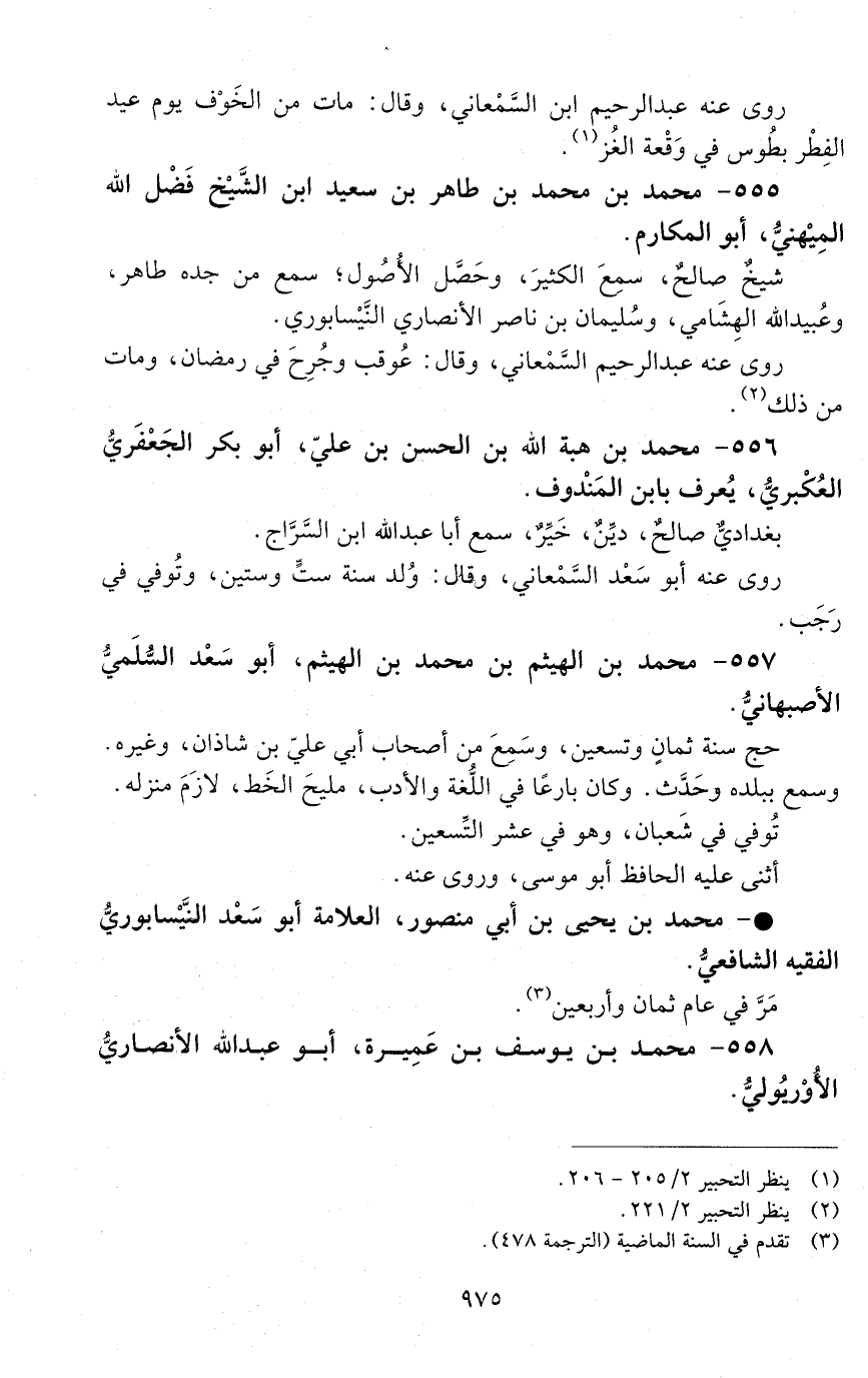 555 - محمد بْن محمد بن طاهر بن سعيد ابن الشّيخ فضل اللَّه المِيهَنيّ، أبو المكارم. [المتوفى: 549 هـ]