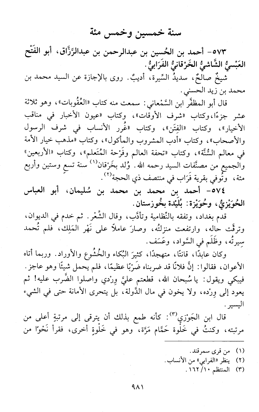 573 - أحمد بْن الحسين بْن عبد الرحمن بْن عبد الرّزّاق، أبو الفتح العَبْسيّ، الشّاشيّ الخِرْقانيّ الفَرَابيّ. [المتوفى: 550 هـ]
