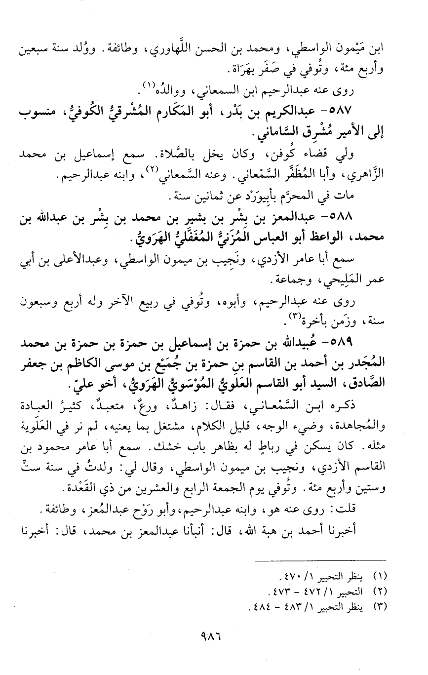 589 - عُبَيْد اللَّه بْن حمزة بْن إسماعيل بْن حمزة بْن حمزة بْن محمد المجدّر بن أحمد بن القاسم بن حمزة بْن جُميع بْن موسى الكاظم بْن جعفر الصّادق السّيّد، أبو القاسم العَلَويّ، المُوسَوِيّ، الهَرَويّ، [المتوفى: 550 هـ]