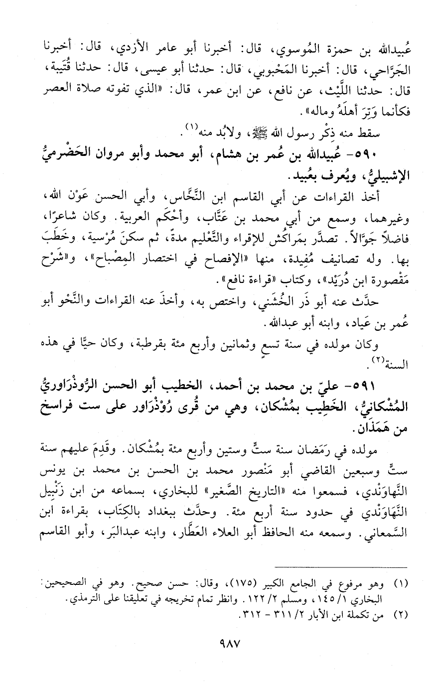 590 - عُبَيْد اللَّه بْن عُمَر بْن هشام، أبو محمد، وأبو مروان، الحضْرميّ، الإشبيليّ، ويُعرف بعُبَيْد. [المتوفى: 550 هـ]