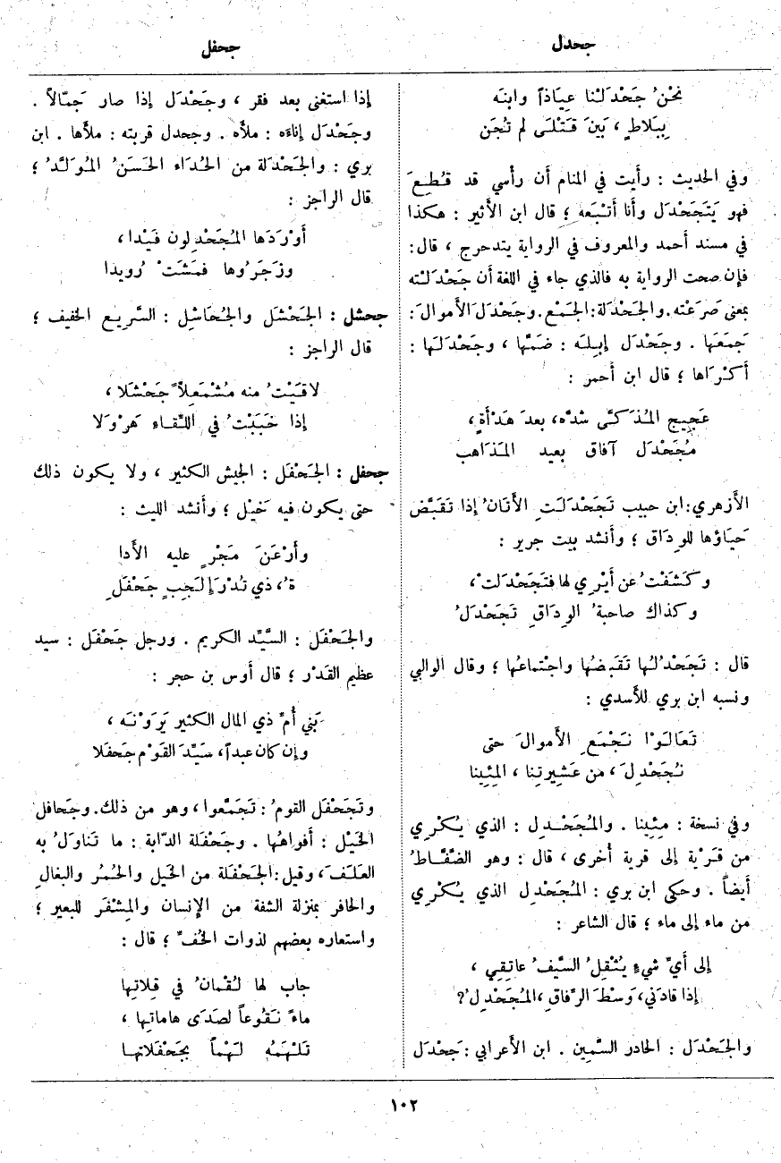 جحفل: الجَحْفَل: الْجَيْشُ الْكَثِيرُ، وَلَا يَكُونُ ذَلِكَ حَتَّى يَكُونَ فِيهِ خَيْل؛ وأَنشد اللَّيْثُ: