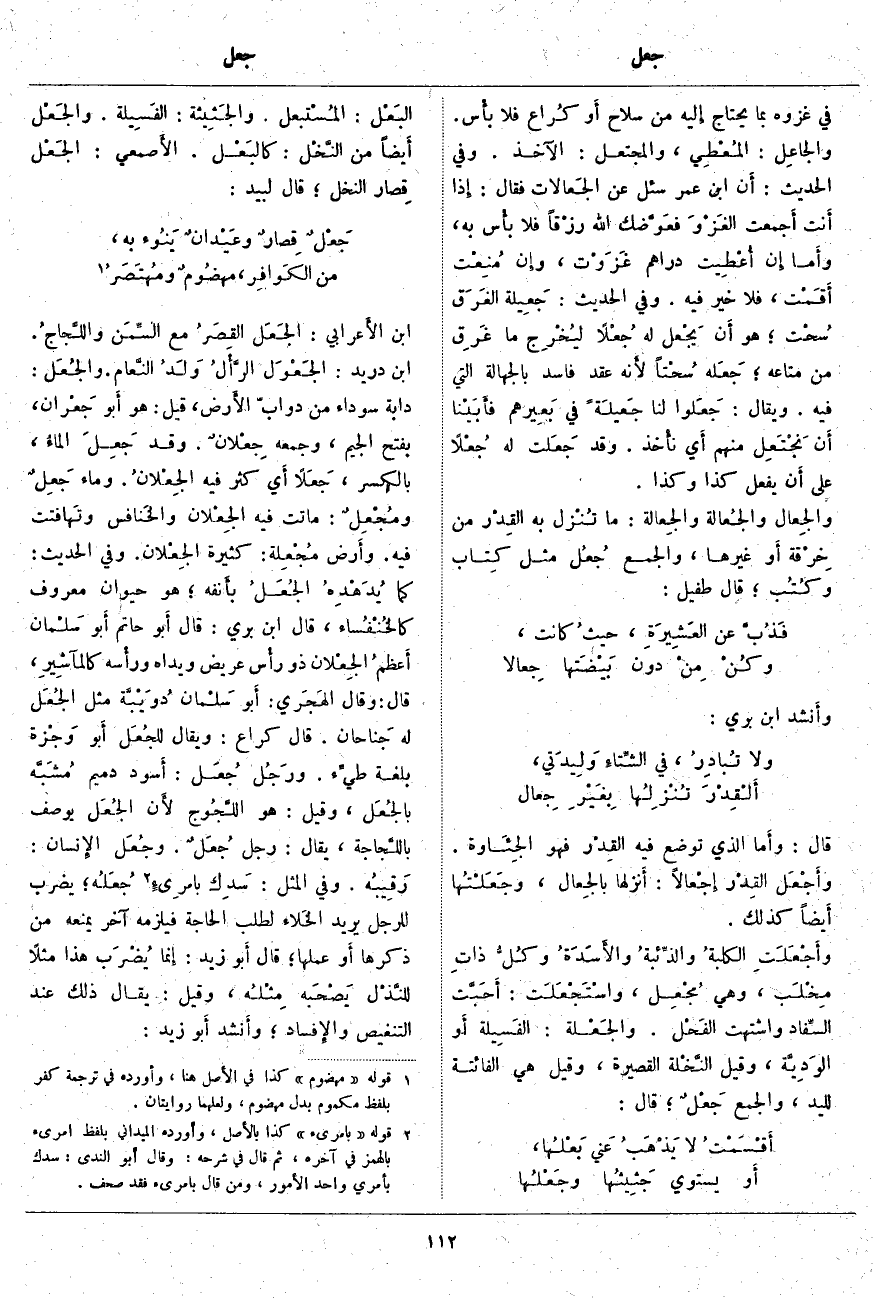 . ابْنُ الأَعرابي: الجَعَل القِصَرُ مَعَ السِّمَن واللَّجاجُ. ابْنُ دُرَيْدٍ: الجَعْوَل الرَّأْلُ وَلَدُ النَّعام. والجُعَل: دَابَّةٌ سَوْدَاءُ مِنْ دَوَابِّ الأَرض، قِيلَ: هُوَ أَبو جَعْران، بِفَتْحِ الْجِيمِ، وَجَمْعُهُ جِعْلانٌ. وَقَدْ جَعِلَ الماءُ، بِالْكَسْرِ، جَعَلًا أَي كَثُرَ فِيهِ الجِعْلانُ. وَمَاءٌ جَعِلٌ ومُجْعِلٌ: مَاتَتْ فِيهِ الجِعْلان والخَنافس وتَهافتت فِيهِ. وأَرض مُجْعِلة: كَثِيرَةُ الجِعْلان. وَفِي الْحَدِيثِ: