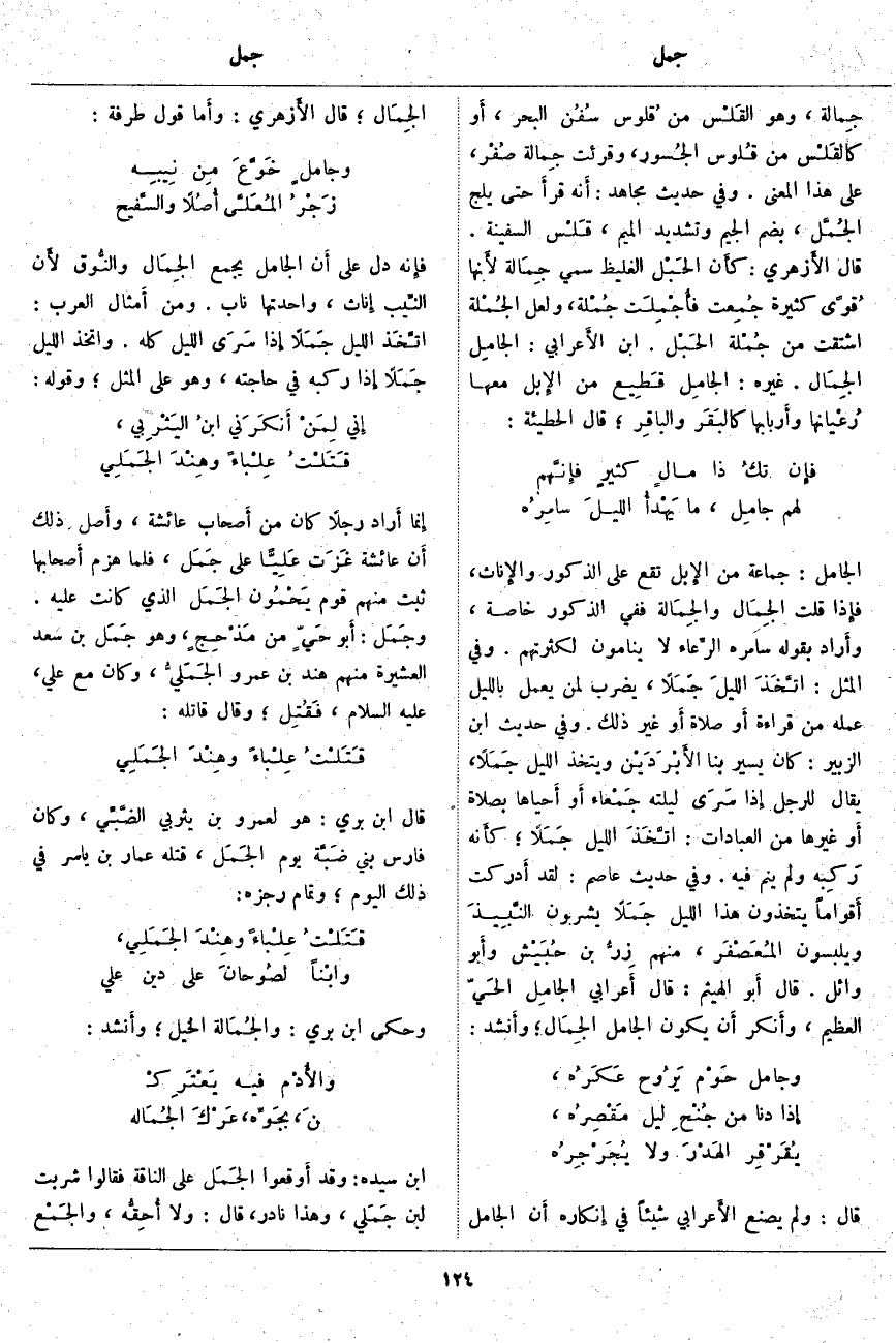قَالَ: وَلَمْ يَصْنَعِ الأَعرابي شَيْئًا فِي إِنكاره أَن الجَامِل الجِمَال؛ قَالَ الأَزهري: وأَما قَوْلُ طَرَفَةَ: