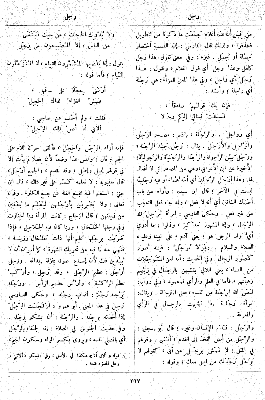 أَي رواجلَ. والرُّجْلة، بِالضَّمِّ: مَصْدَرُ الرَّجُل والرَّاجِل والأَرْجَل. يُقَالُ: رَجُلٌ جَيِّد الرُّجْلَة، ورَجُلٌ بيِّن الرُّجولة والرُّجْلة والرُّجْلِيَّة والرُّجُولِيَّة؛ الأَخيرة عَنِ ابْنِ الأَعرابي، وَهِيَ مِنَ الْمَصَادِرِ الَّتِي لَا أَفعال لَهَا. وَهَذَا أَرْجَل الرَّجُلين أَي أَشدُّهُما، أَو فِيهِ رُجْلِيَّة لَيْسَتْ فِي الْآخَرِ؛ قَالَ ابْنُ سِيدَهْ: وأُراه مِنْ بَابِ أَحْنَك الشَّاتَيْنِ أَي أَنه لَا فِعْلَ لَهُ وإِنما جَاءَ فِعْلُ التَّعَجُّبَ مِنْ غَيْرِ فِعْلٍ. وَحَكَى الْفَارِسِيُّ: امرأَة مُرْجِلٌ تَلِدُ الرِّجال، وإِنما الْمَشْهُورُ مُذْكِر، وَقَالُوا: مَا أَدري أَيُّ وَلَدِ الرَّجُلِ هُوَ، يَعْنِي آدَمَ، عَلَى نَبِيِّنَا وَعَلَيْهِ الصَّلَاةُ وَالسَّلَامُ. وبُرْدٌ مُرَجَّلٌ: فِيهِ صُوَر كَصُوَر الرِّجَالِ. وَفِي الْحَدِيثِ
