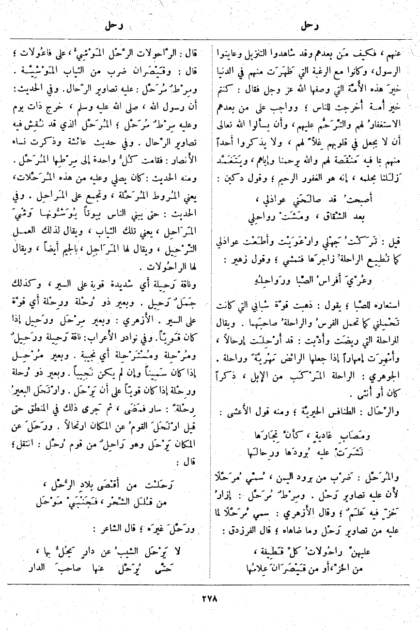 اسْتَعَارَهُ للصِّبا، يَقُولُ: ذَهَبَتْ قُوَّةُ شَبَابِي الَّتِي كَانَتْ تَحْمِلني كَمَا تَحْمِلُ الفرسُ والراحلةُ صاحبَهما. وَيُقَالُ للرَّاحِلَة الَّتِي ريضَت وأُدِّبَت: قَدْ أُرْحِلَت إِرْحَالًا، وأُمْهِرَت إِمهاراً إِذا جَعَلَهَا الرَّائِضُ مَهْريَّةً ورَاحِلَة. الْجَوْهَرِيُّ: الرَّاحِلَة المَرْكَب مِنَ الإِبل، ذَكَرًا كَانَ أَو أُنثى. والرِّحَال: الطَّنَافِسُ الحيريَّة، وَمِنْهُ قَوْلُ الأَعشى: