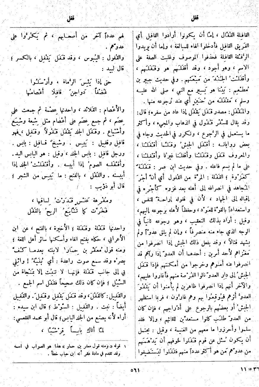 القَافِلَة القُفَّال، إِمَّا أَن يَكُونُوا أَرادوا القافِل أَي الفَريق القافِل فأَدخلوا الْهَاءَ لِلْمُبَالَغَةِ، وإِما أَن يُرِيدُوا الرُّفْقة القافِلة فَحَذَفُوا الْمَوْصُوفَ وَغَلَبَتِ الصِّفَةُ عَلَى الِاسْمِ، وَهُوَ أَجود، وَقَدْ أَقْفَلَهم هُوَ وقَفَلَهم، وأَقْفَلْتُ الجُنْدَ مِنْ مَبْعَثهم. وَفِي حَدِيثِ