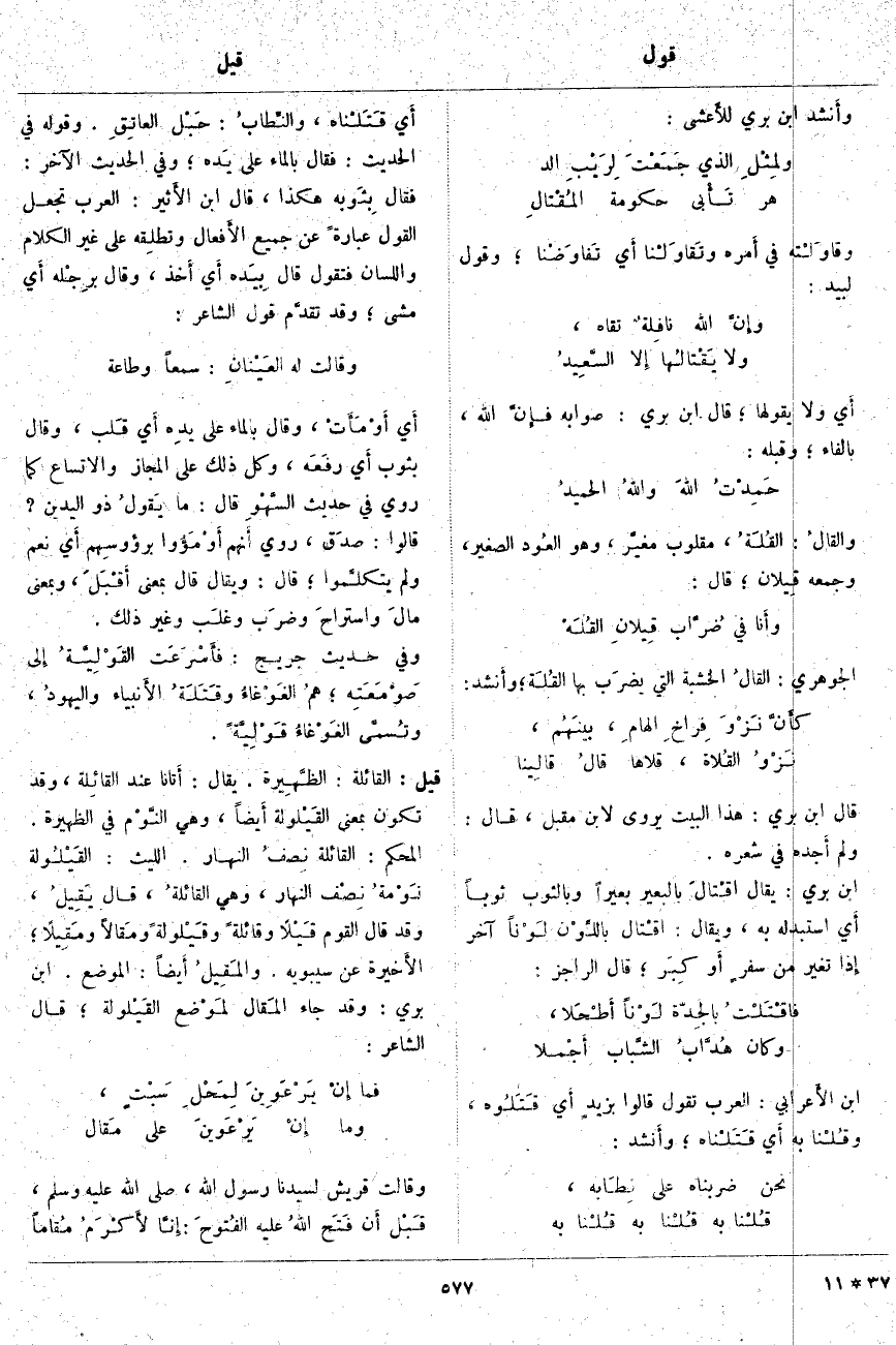 ، قَالَ ابْنُ الأَثير: الْعَرَبُ تَجْعَلُ الْقَوْلَ عِبَارَةً عَنْ جَمِيعِ الأَفعال وتطلِقه عَلَى غَيْرِ الْكَلَامِ وَاللِّسَانِ فَتَقُولُ قَالَ بِيَده أَي أَخذ، وقَالَ برِجْله أَي مَشَى؛ وَقَدْ تقدَّم قَوْلُ الشَّاعِرِ:
