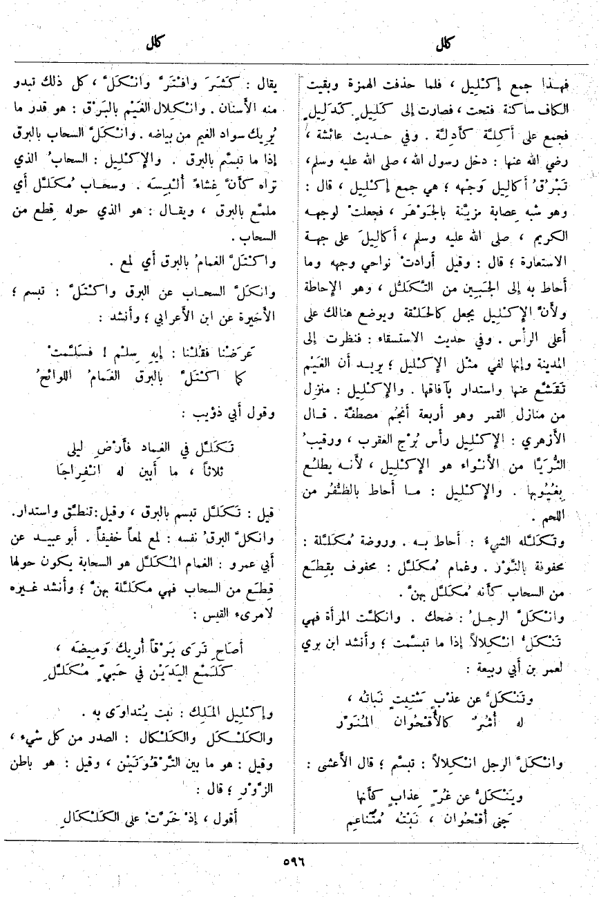 قِيلَ: تَكَلَّل تَبَسَّمَ بِالْبَرْقِ، وَقِيلَ: تنطَّق وَاسْتَدَارَ. وانكلَّ البرقُ نَفْسُهُ: لَمَعَ لَمَعًا خَفِيفًا. أَبو عُبَيْدٍ عَنْ أَبي عَمْرٍو: الْغَمَامُ المُكَلَّل هُوَ السَّحَابَةُ يَكُونُ حَوْلَهَا قِطَع مِنَ السَّحَابِ فَهِيَ مكَلَّلة بهنَّ؛ وأَنشد غَيْرُهُ لِامْرِئِ الْقَيْسِ: