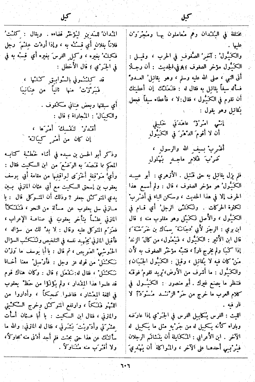 مُخْتَلِفَةٌ فِي البُلْدان وَهُمْ مُعاملون بِهَا ومُجْرَوْن عَلَيْهَا. والكَيُّولُ: آخِرُ الصُّفوفِ فِي الْحَرْبِ، وَقِيلَ: الكَيُّول مُؤَخَّرُ الصُّفُوفِ؛ وَفِي الْحَدِيثِ: