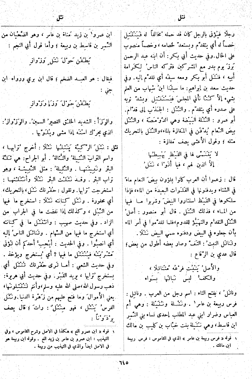(2). قوله [ابن عمرو إلخ] هكذا في الأصل وشرح القاموس، وفي التهذيب: ابن عَمْرِو بْنِ عَامِرِ بْنِ زيد إلخ. وقوله ابن ربيعة هُوَ فِي الْأَصْلِ أَيضاً والذي في التهذيب من ربيعة