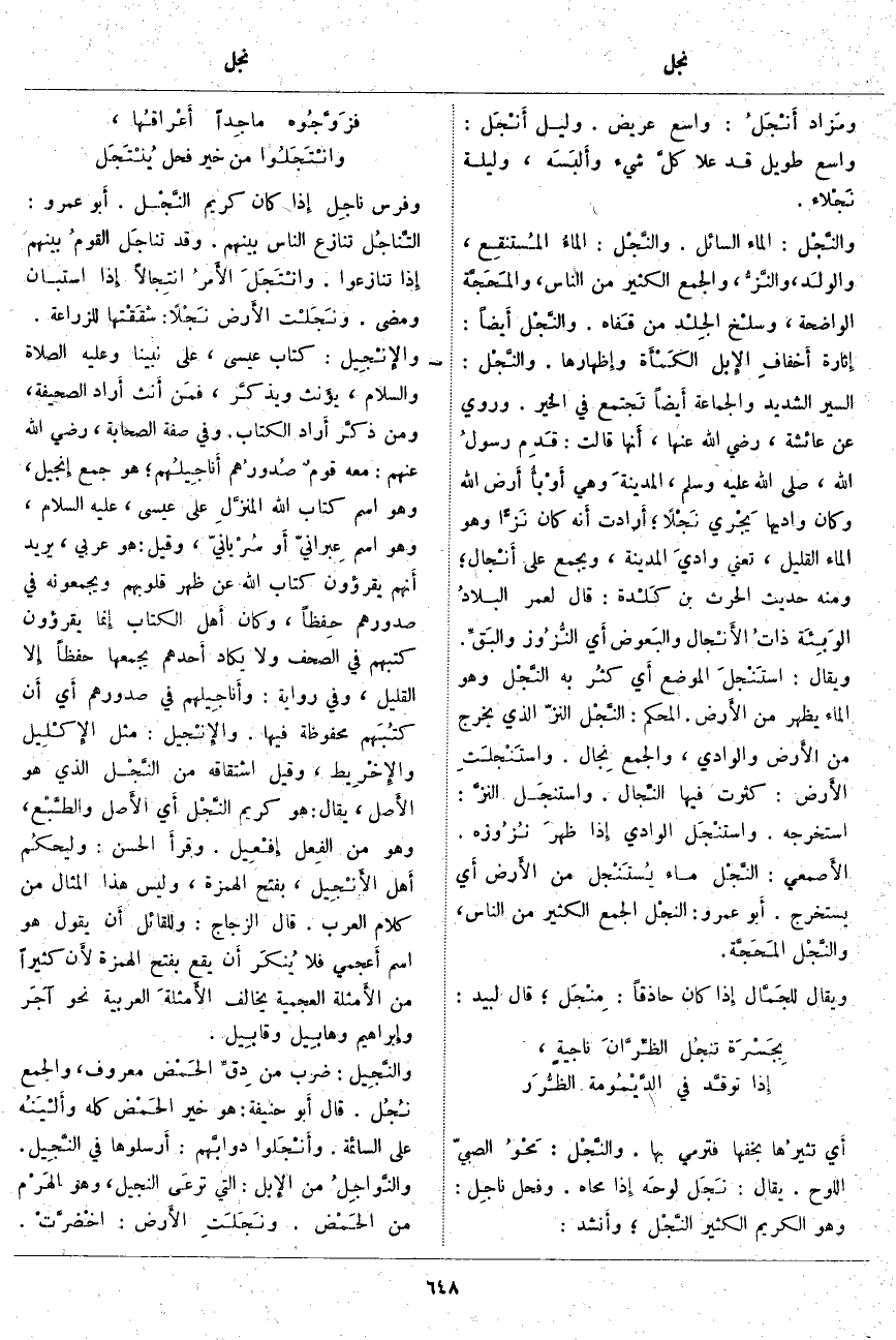 وَفَرَسٍ نَاجِل إِذا كَانَ كَرِيمَ النَّجْل. أَبو عَمْرٍو: التَّنَاجُلُ تَنَازُعُ النَّاسِ بَيْنَهُمْ. وَقَدْ تَنَاجَلَ القومُ بَيْنَهُمْ إِذا تَنَازَعُوا. وانْتَجَلَ الأَمرُ انْتِجَالًا إِذا اسْتَبَانَ وَمَضَى. ونَجَلْت الأَرض نَجْلًا: شقَقْتها لِلزِّرَاعَةِ. والإِنْجِيل: كِتَابُ عِيسَى، عَلَى نَبِيِّنَا وَعَلَيْهِ الصَّلَاةُ وَالسَّلَامُ، يؤَنث ويذكَّر، فمَن أَنث أَراد الصَّحِيفَةَ، وَمَنْ ذكَّر أَراد الْكِتَابَ. وَفِي صِفَةِ الصَّحَابَةِ، رَضِيَ اللَّهُ عَنْهُمْ: