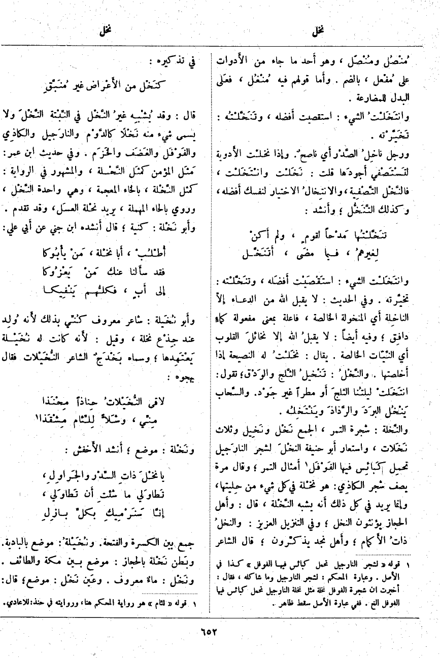 ؛ بِالْخَاءِ الْمُعْجَمَةِ، وَهِيَ وَاحِدَةُ النَّخْل، وَرُوِيَ بِالْحَاءِ الْمُهْمَلَةِ، يُرِيدُ نحْلة العسَل، وَقَدْ تَقَدَّمَ. وأَبو نَخْلة: كُنْيَةٌ؛ قَالَ أَنشده ابْنُ جِنِّي عَنْ أَبي عَلِيٍّ:
