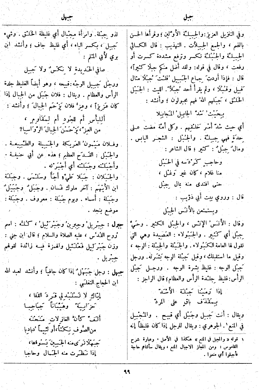 (3). قوله [والمجبل في المنع] هكذا في الأَصل، وعبارة شرح القاموس: ومن المجاز الإِجْبَال المنع، ويقال سألناهم حاجة فَأَجْبَلُوا أي منعوا