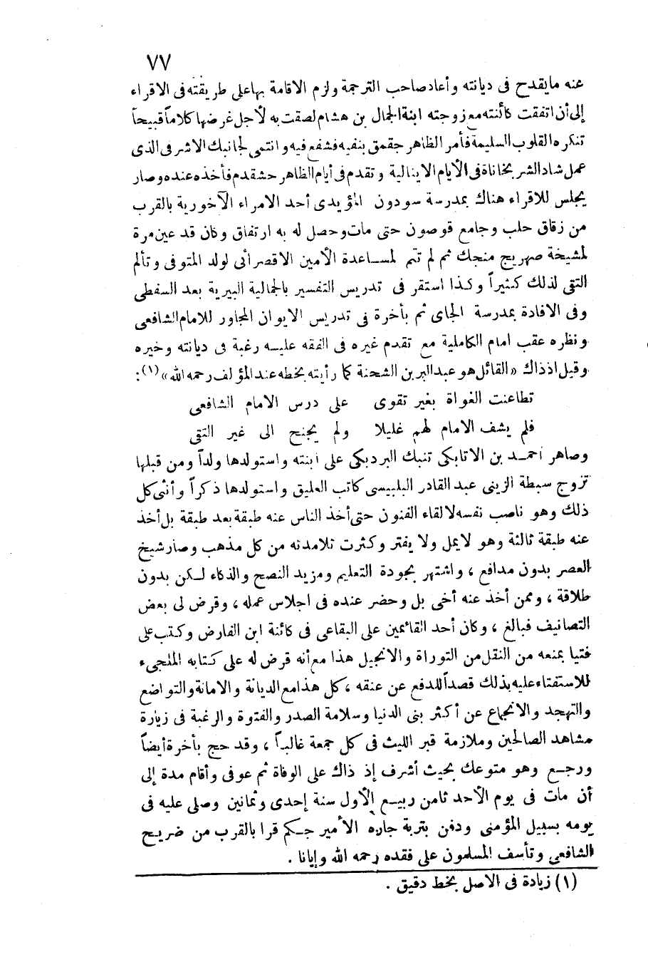 (تطاعنت الغواة بِغَيْر تقوى ... على درس الإِمَام الشَّافِعِي)
