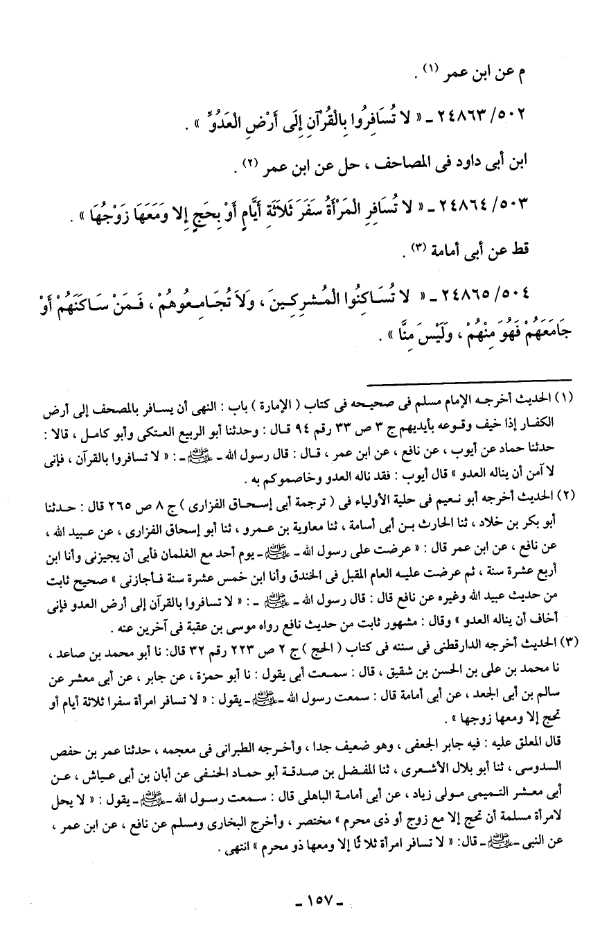 502/ 24863 - "لا تُسَافِرُوا بِالقُرآنِ إِلَى أرْضِ العَدُوِّ".