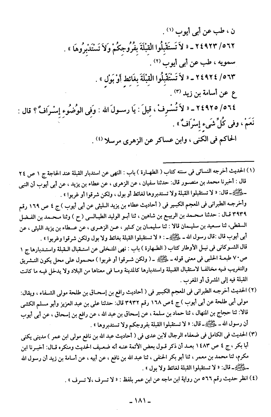 562/ 24923 - "لَا تَستَقْبِلُوا الْقِبْلَةَ بِفُرُوجِكُمْ وَلَا تَسْتَدْبِرُوهَا".