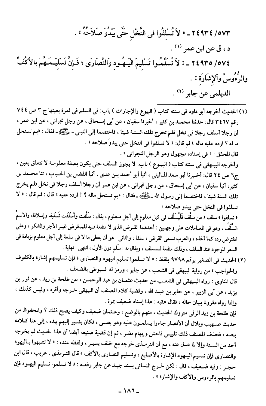 573/ 24934 - "لَا تُسْلِفُوا في النَّخْلِ حَتَّى يَبْدُوَ صَلَاحُهُ".