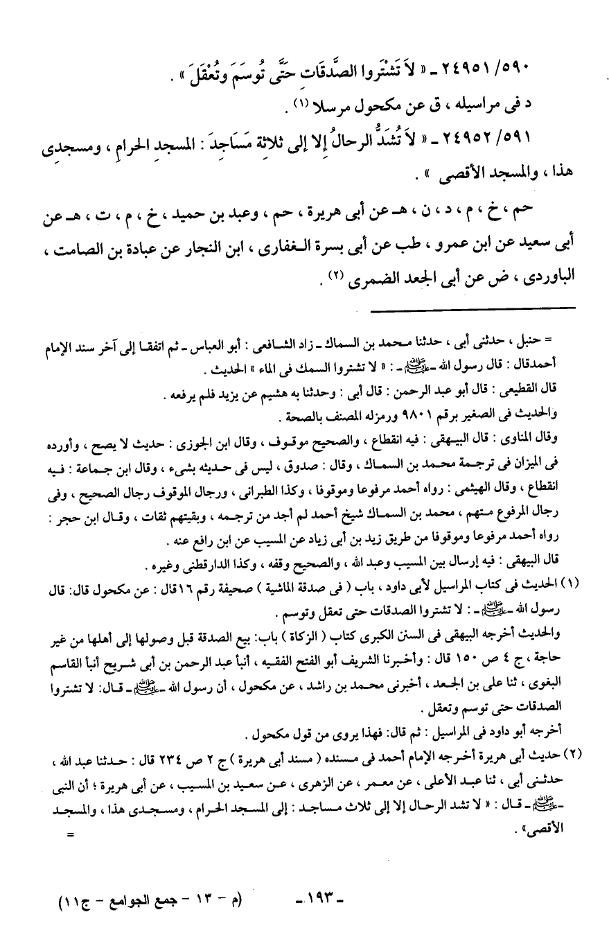 591/ 24952 - "لَا تُشَدُّ الرحالُ إِلا إلى ثلاثِة مَسَاجِدَ: المسجدِ الحرامِ، ومسجدى هذا، والمسجد الأقصى".
