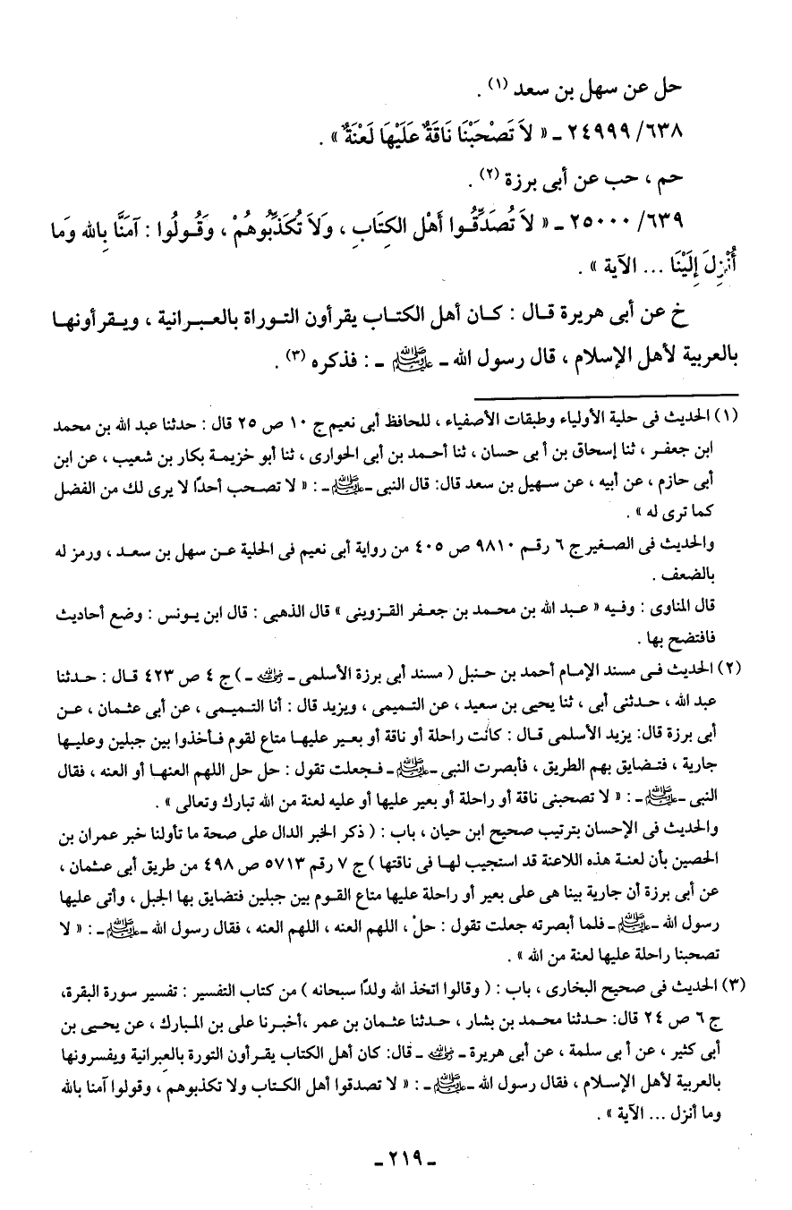 639/ 25000 - "لَا تُصَدِّقُوا أَهْل الكِتَابِ، وَلَا تُكَذِّبُوهُمْ، وَقُولُوا: آمَنَّا بِاللَّهِ وَمَا أُنْزِلَ إِلَينَا ... الآية".
