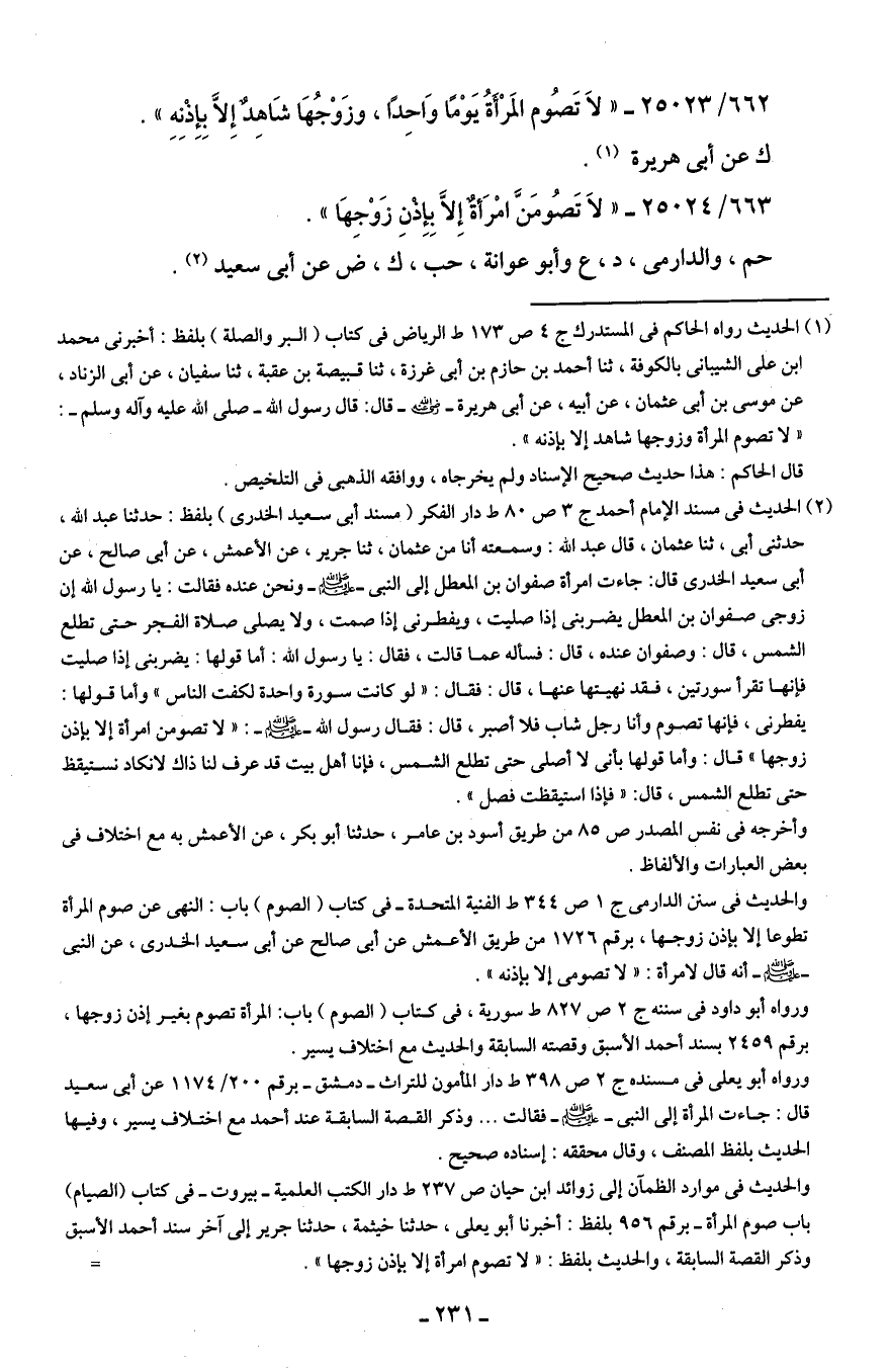 663/ 25024 - "لَا تَصُومَنَّ امْرَأةٌ إلا بِإِذْنِ زَوْجِهَا".