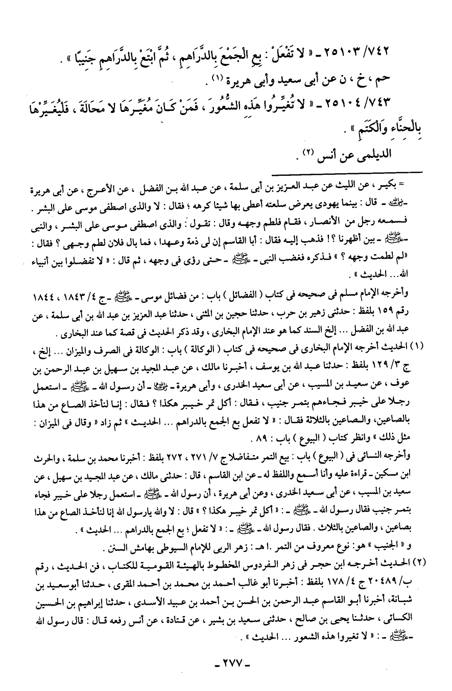 742/ 25103 - "لا تَفْعَلْ: بِعِ الْجَمع بِالدَّرَاهِمِ، ثُمَّ ابْتَعْ بِالدَّرَاهِمِ جَنِيبًا".