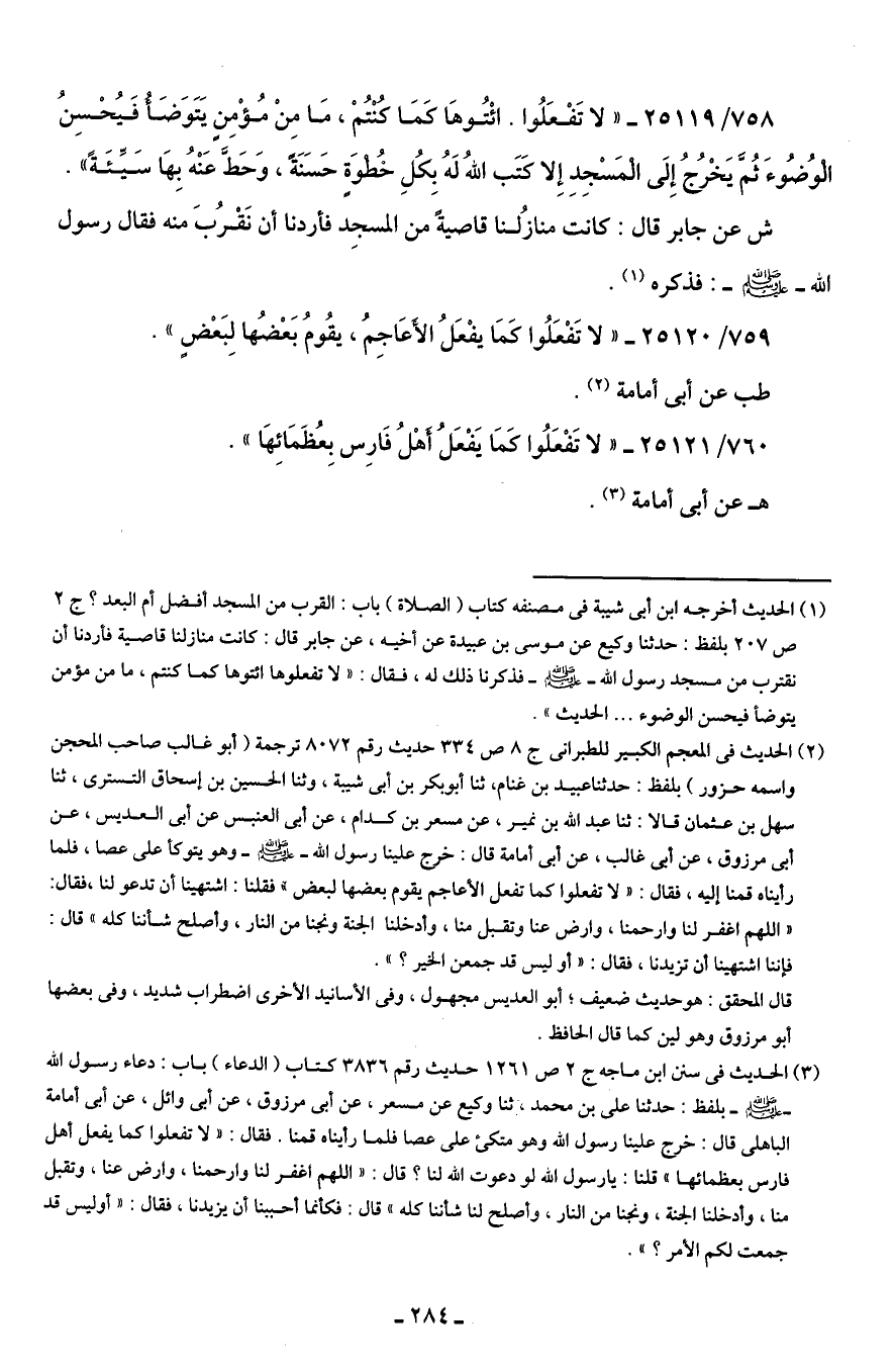 759/ 25120 - "لا تَفْعَلُوا كَمَا يفْعَلُ الأعَاجِمُ، يقُومُ بَعْضُها لِبَعْضٍ".