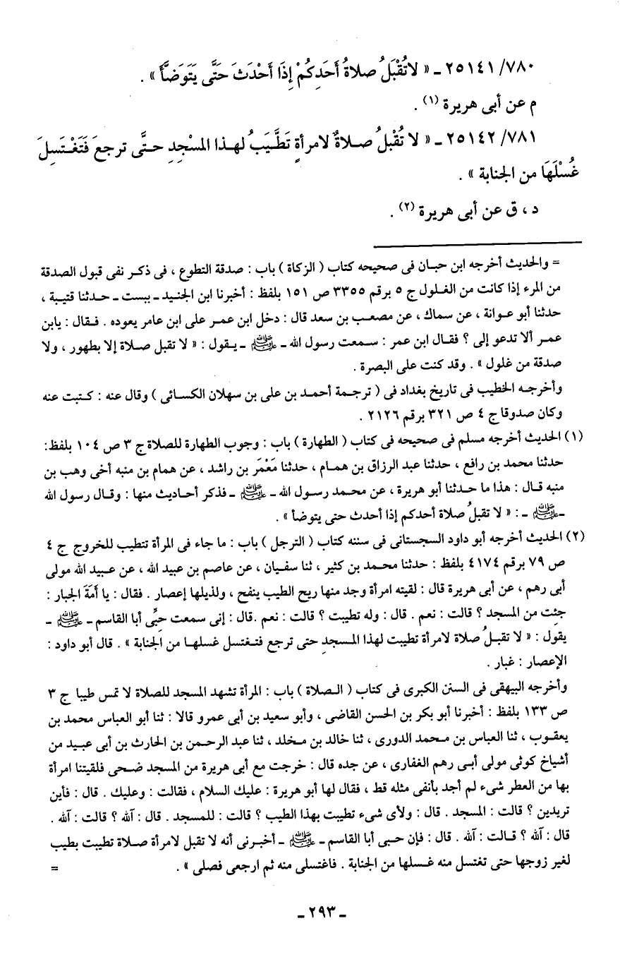 781/ 25142 - "لا تُقْبلُ صلاةٌ لامرأةٍ تَطَّيَبُ لهذا المسْجِدِ حتَّى ترجعَ فَتَغْتَسِلَ غُسْلَهَا من الجنابة".