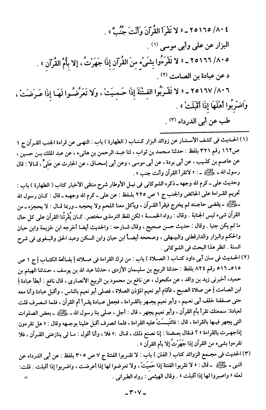 804/ 25165 - "لا تَقْرَأ القُرْآنَ وَأَنْتَ جُنُبٌ".