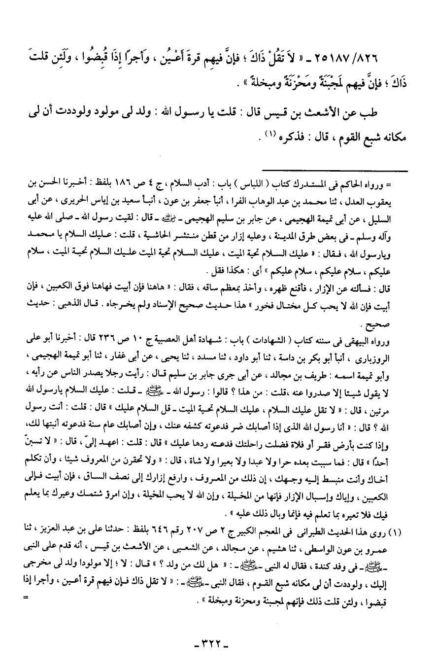 826/ 25187 - "لاَ تَقُلْ ذاكَ؟ فإنَّ فيهِم قرةَ أَعْيُن، وَأجرًا إِذَا قُبِضُوا، وَلَئِن قلتَ ذَاكَ؛ فإنَّ فيهم لمَجْبَنَةً ومَحْزَنَةً ومبخلةً".