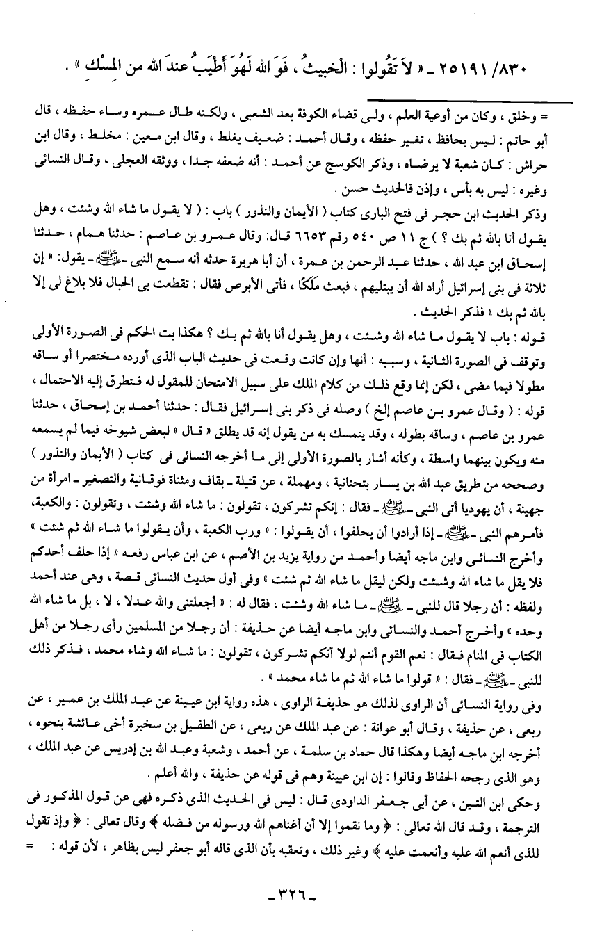 830/ 25191 - "لاَ تَقُولوا: الْخبيثُ، فَوَ الله لَهُوَ أطيَبُ عندَ الله من المِسْكِ".