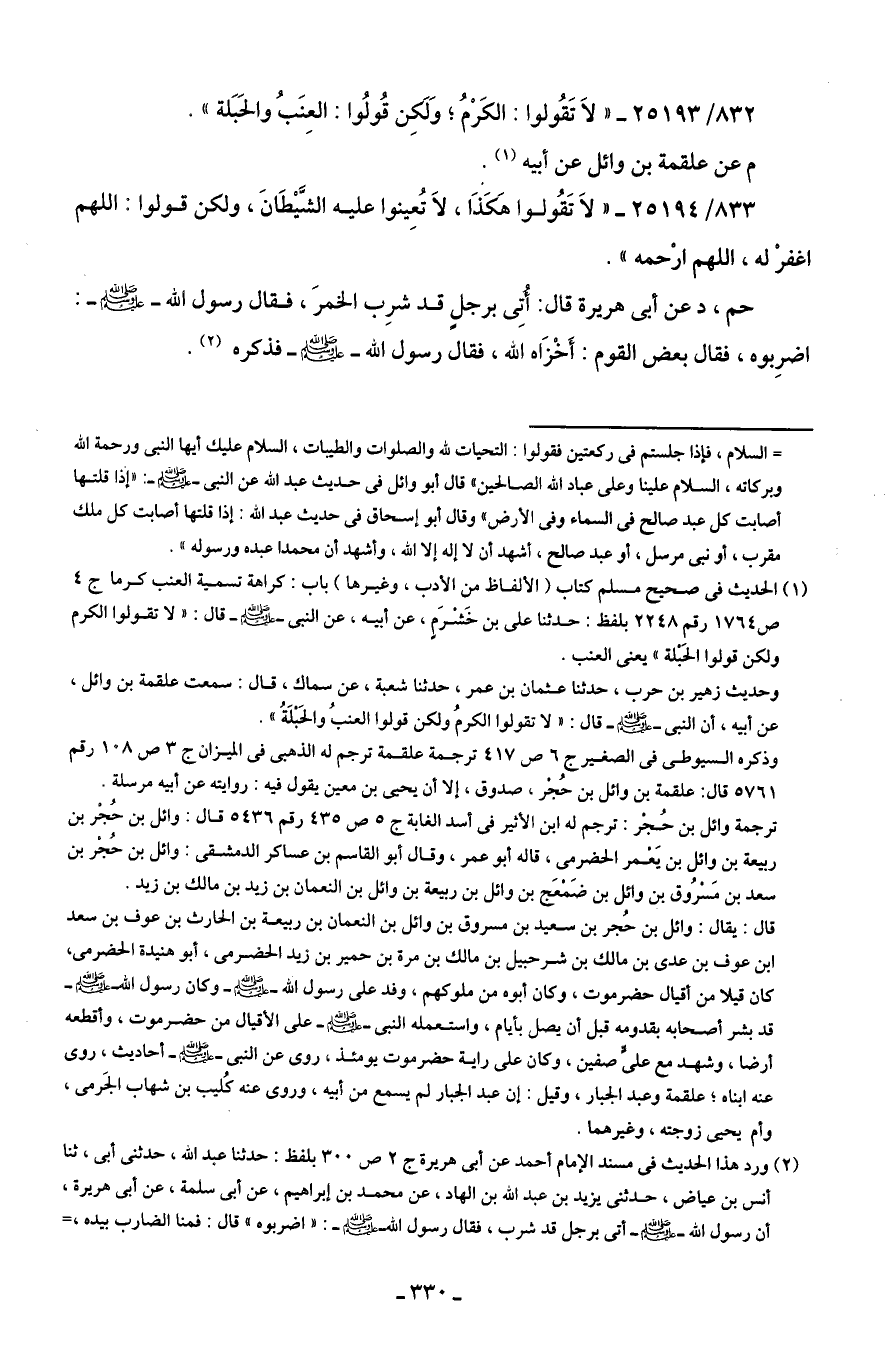 832/ 25193 - "لاَ تَقُولوا: الكَرْمُ؛ وَلَكِن قُولُوا: العِنَبُ والحَبَلة".