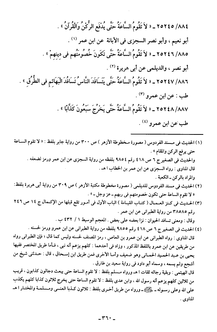 885/ 25246 - "لاَ تَقُومُ السَّاعَةُ حَتَّى تَكَونَ خُصُومَتُهم في دِينِهِمْ".