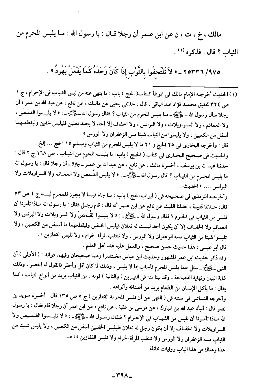 قال: وأخرجه البخارى في 25 الحج و 21 ما لا يلبس المحرم من الثياب ومسلم 15 الحج ... إلخ.