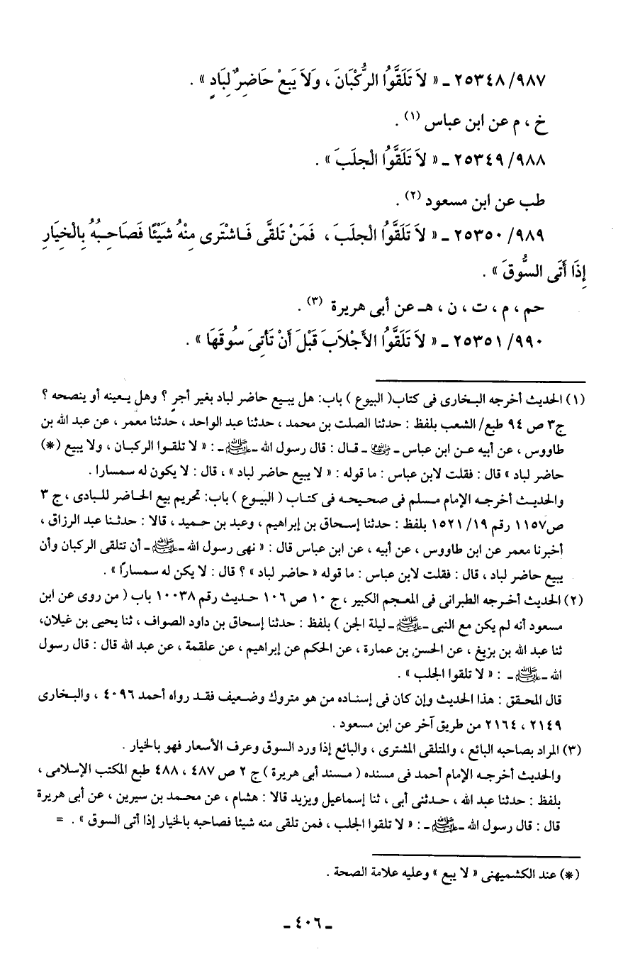 988/ 25349 - "لاَ تَلَقَّوُا الْجلَبَ".