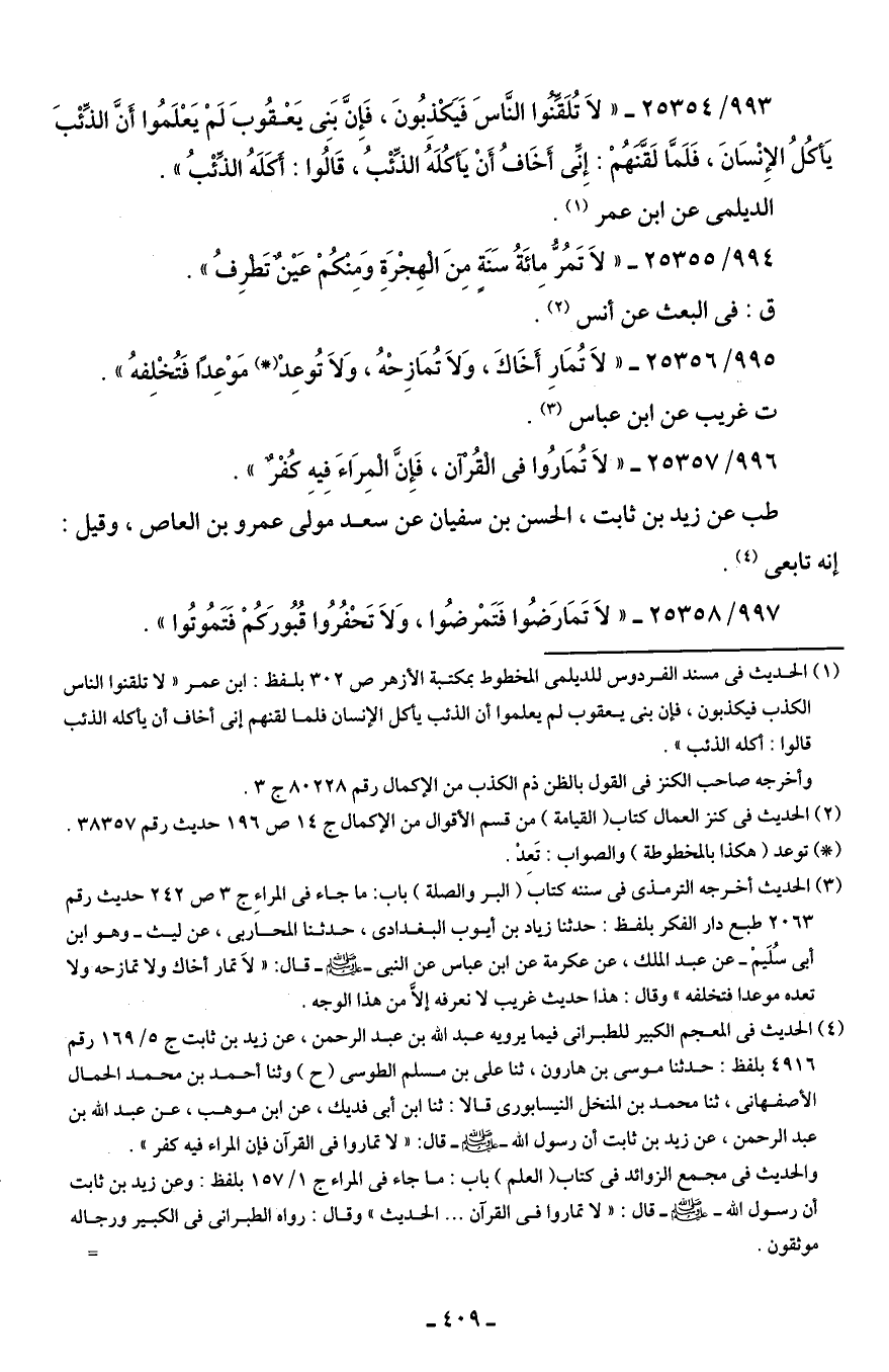 996/ 25357 - "لاَ تُمَارُوا في الْقُرْآن، فَإِنَّ الْمِرَاءَ فِيهِ كُفْرٌ".