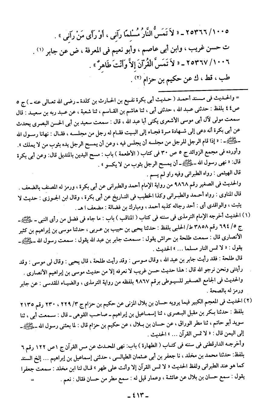 1006/ 25367 - "لاَ تَمَسَّ الْقُرْآنَ إِلاَّ وَأَنْتَ طَاهِرٌ".