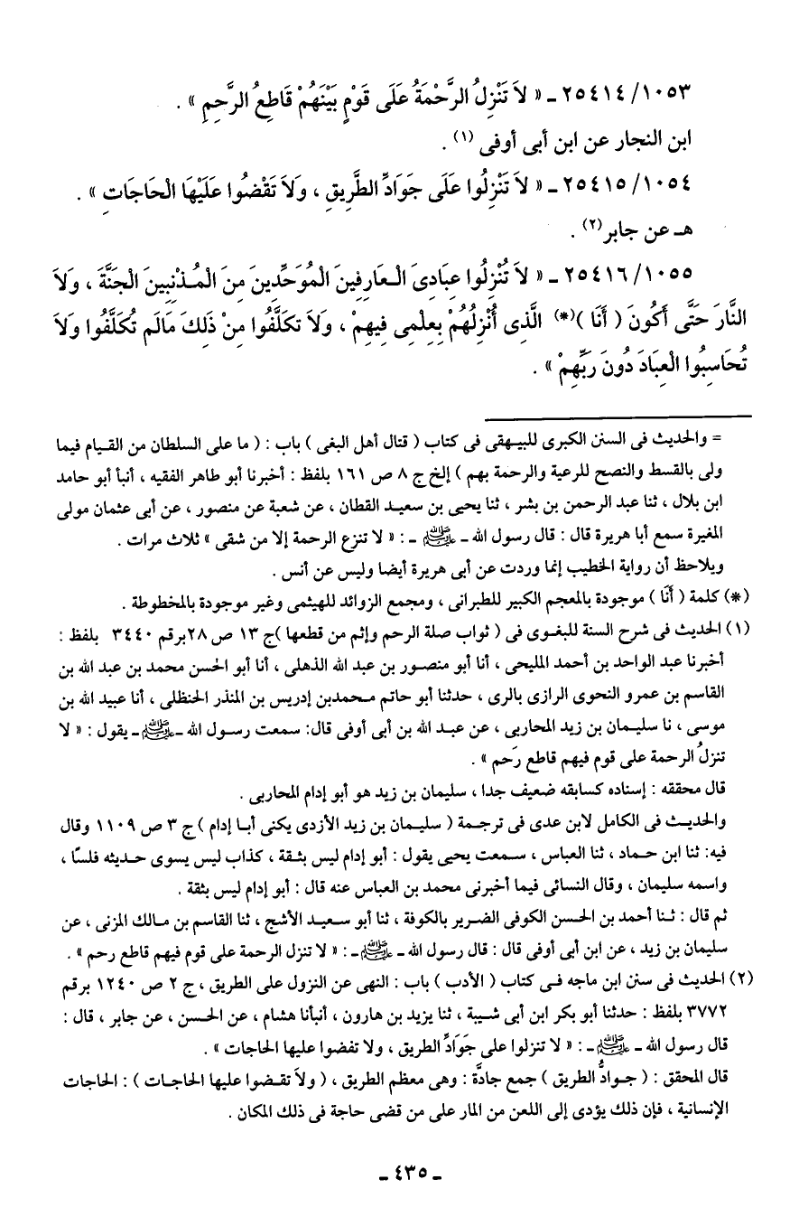 1054/ 25415 - "لَا تَنْزِلُوا عَلَى جَوَادِّ الطَّرِيقِ، وَلَا تَقْضُوا عَلَيْهَا الْحَاجَات".