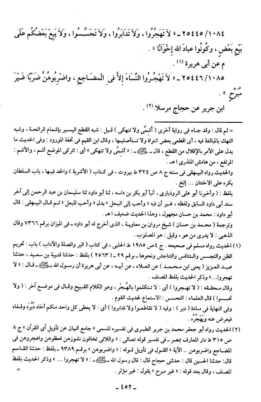 1085/ 25446 - "لَا تَهْجُرُوا النِّسَاءَ إِلَّا في الْمضَاجع، واضْرِبُوهُنَّ ضَرْبًا غَيْرَ مُبَرِّحٍ".