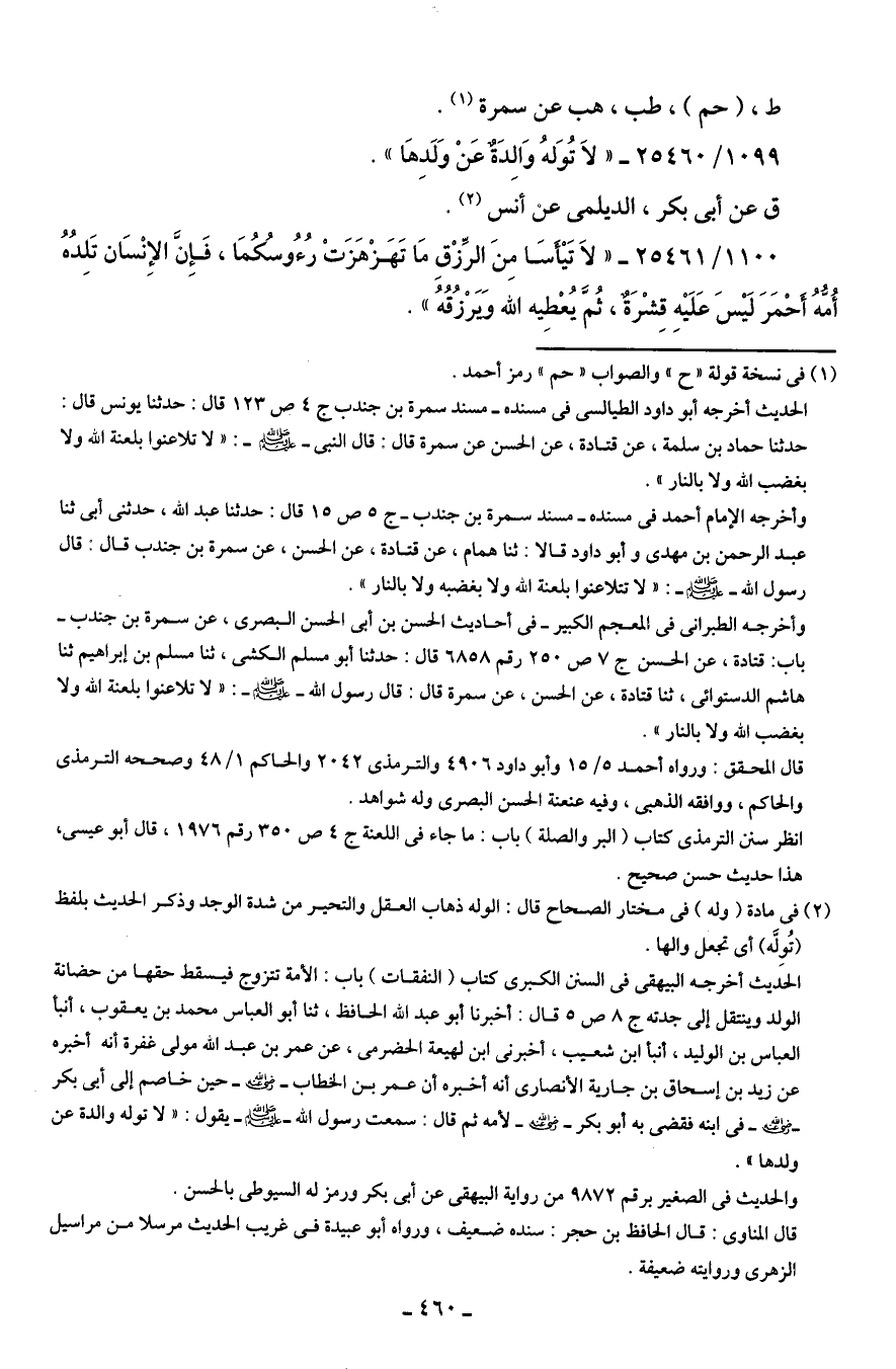 1099/ 25460 - "لاَ تُوَلهُ وَالِدَةٌ عَنْ وَلَدِهَا".