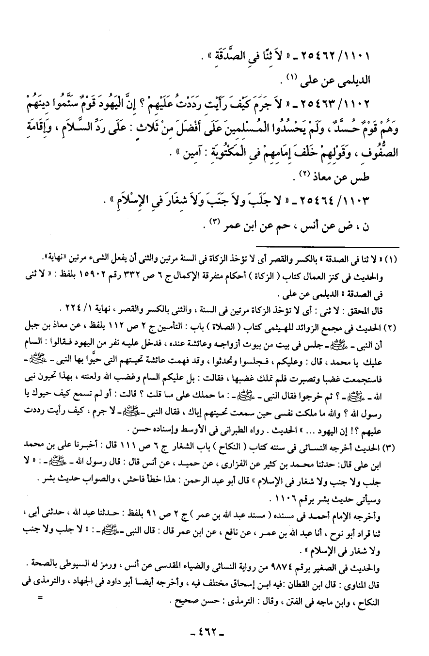 1101/ 25462 - "لاَ ثِنًا في الصَّدَقَةِ".