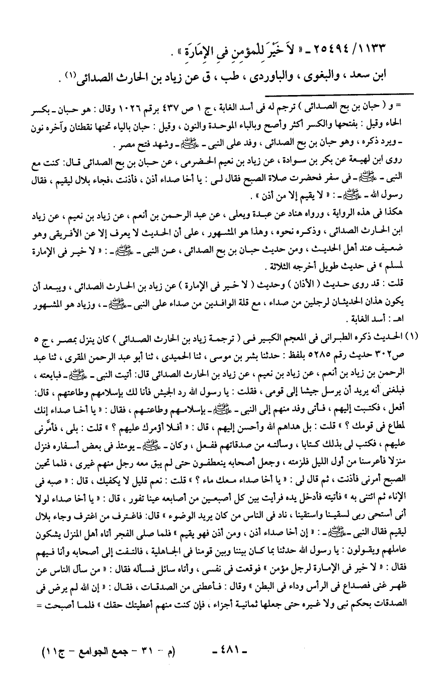 1133/ 25494 - " لاَ خَيْرَ لِلمؤمِنِ في الإِمَارَةِ ".