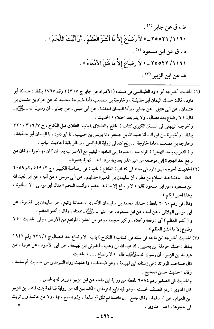1160/ 25521 - "لاَ رَضَاعَ إِلاَّ مَا أَنْشَزَ الْعَظْمَ، أَوْ أَنْبَتَ اللَّحْمَ".