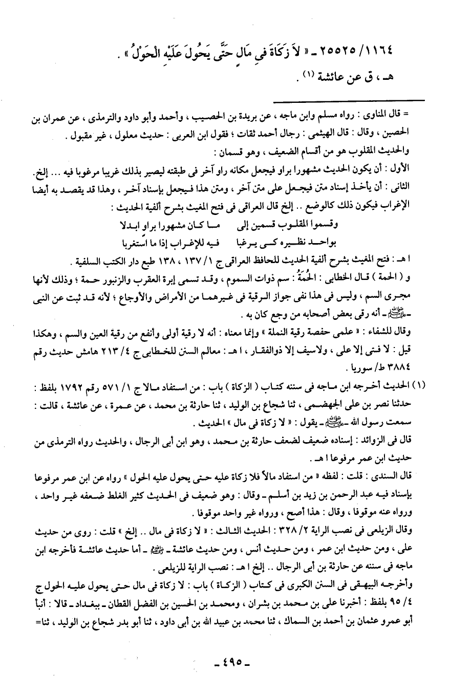 1164/ 25525 - "لاَ زَكَاةَ في مَالٍ حَتَّى يَحُولَ عَلَيْه الْحَوْلُ".