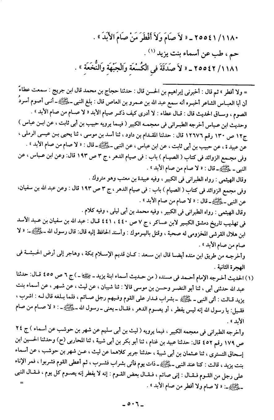 1180/ 25541 - "لاَ صَامَ وَلاَ أَفْطَرَ مَنْ صَامَ الأبَدَ".