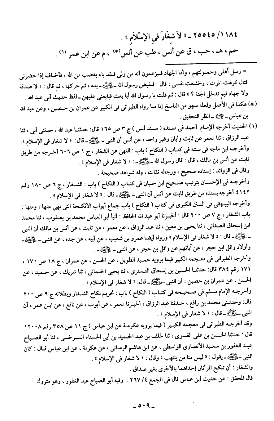 1184/ 25545 - "لاَ شِغَارَ في الإسْلاَمِ".