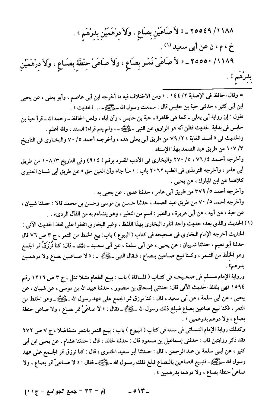 1188/ 25549 - "لاَ صَاعَيْنِ بِصَاعٍ، وَلاَ دِرْهَمَيْنِ بِدِرْهَمٍ".