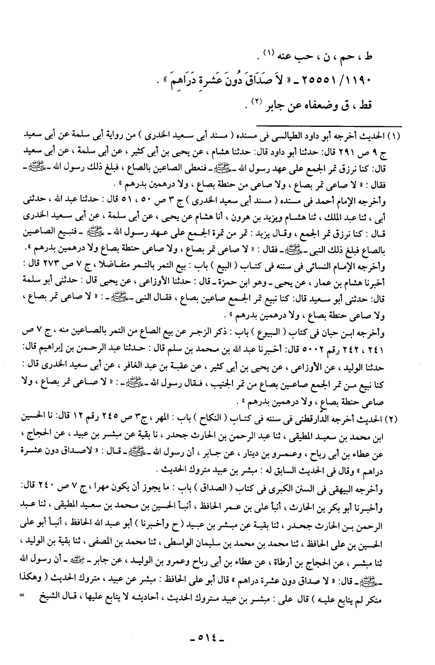 1190/ 25551 - "لاَ صَدَاقَ دُونَ عَشرةِ دَرَاهِمَ".