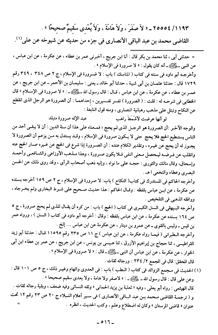 1193/ 25554 - "لَا صَفَرَ، وَلَا هَامَةَ، وَلَا يُعْدِي سَقِيمٌ صحِيحًا".