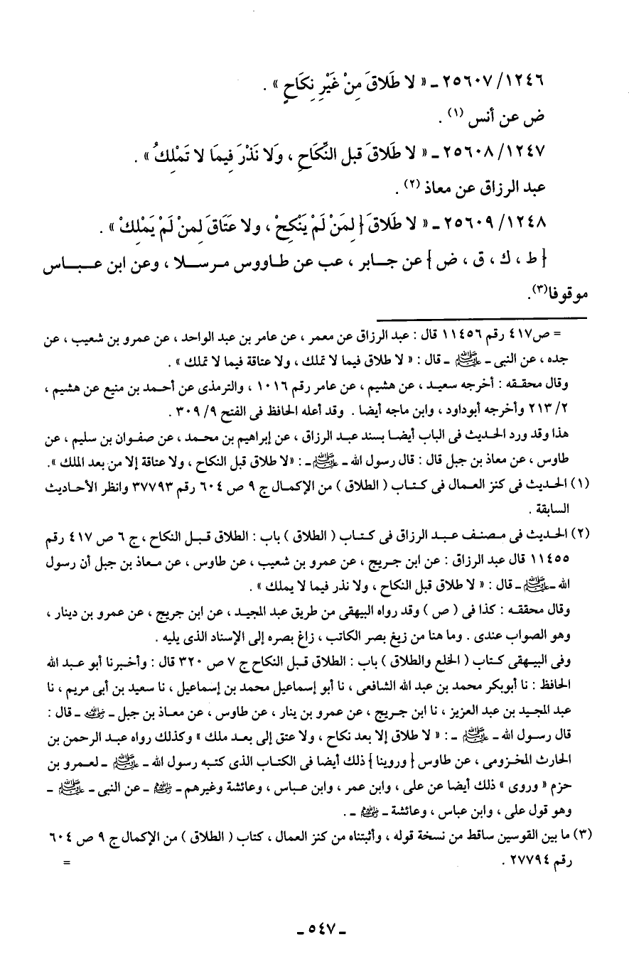 1246/ 25607 - "لا طَلاقَ مِنْ غَيْرِ نِكَاحٍ".